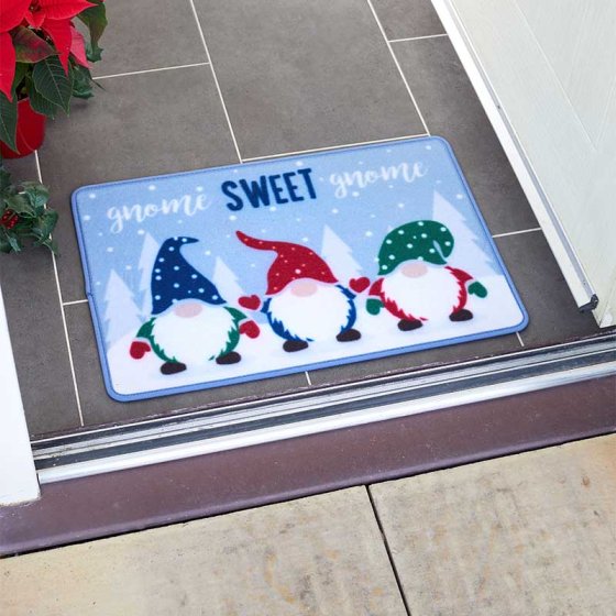 New gnome Sweet gnome 40 x 60cm Doormat Cheapest shipping from €20.00 Stock Status: 12 €5.99 Including Tax: €1.12 Description Fun, festive mat Perfect Christmas floor décor Machine washable at 30° Size: 40 x 60cm